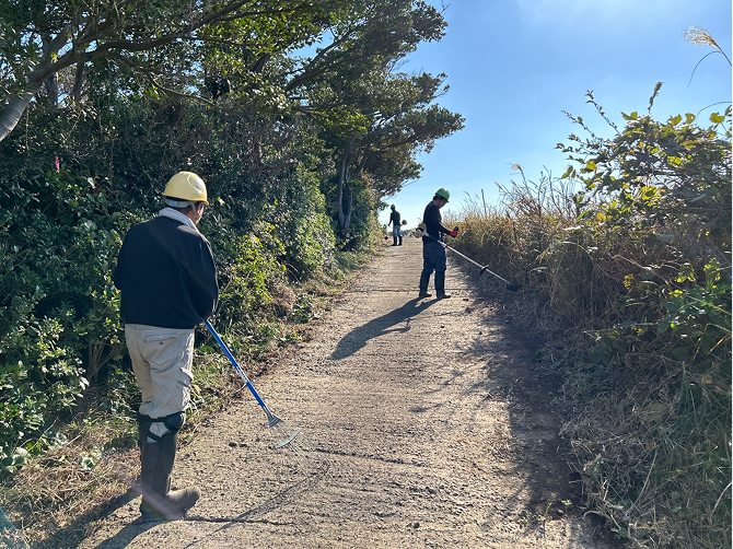 海岸清掃や事業用地内の除草・枝払いなど。